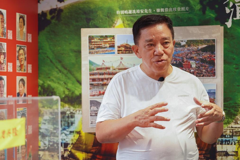香港田灣街坊促進會主席、南區龍舟競渡委員會主席陳富明接受采訪(7月16日攝)。新華社記者 龍鏡伊 攝